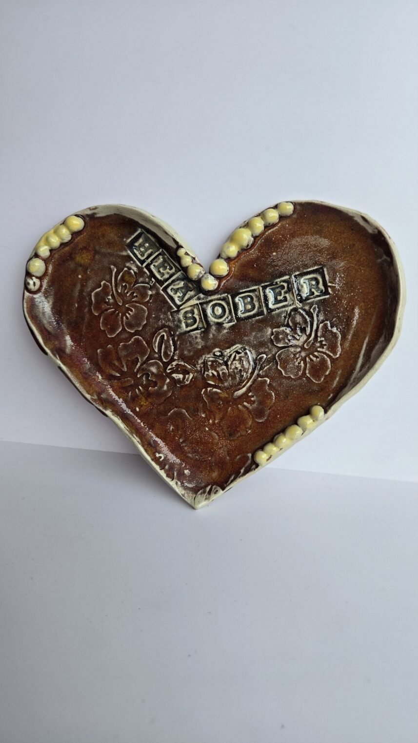 Oranžika glasuuriga ja lillemustriga keraamiline süda ‘HEA SÕBER’. Kaunistatud kollaste pärlitega, mis tähistavad sõprust ja iga pärl on tähtis. Ainulaadne käsitöökingitus, mis ühendab kunsti ja südamliku sõnumi.