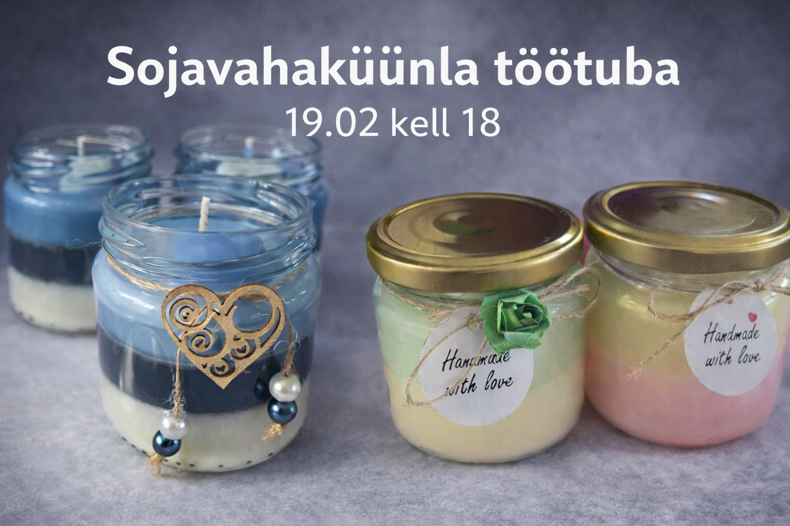 Oled oodatud hubasesse töötuppa, et Vabariigi sünnipäeva eel luua koos kauneid ja meeleolu loovaid sojavahaküünlaid. Küünlavalgus ja mõnusad lõhnad loovad erilise õhkkonna, kus on hea aeg iseendale.