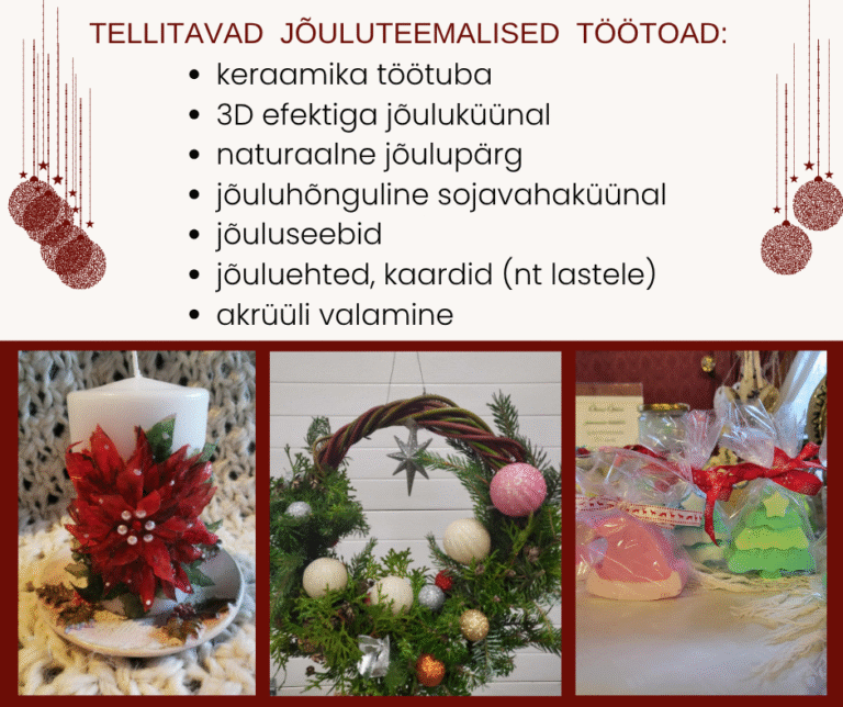 - Hind: alates 10 € osaleja. Küsi pakkumist! (Hind võib sõltuvalt materjalidest muutuda)