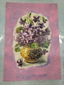 • Kirjeldus: õpid dekupaaži (salvrätipildi siirdamine lõuendile) ja kraklee tehnikat (mis annab vanutatud, krobelise efekti). Kasutame akrüülvärve ja lakke lõpptulemuse viimistlemiseks. Pilt valmib väikesele maalialusele.